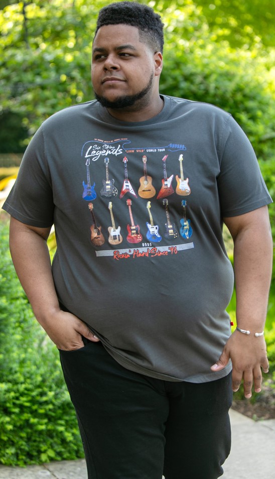 Tabela velikosti - D555 JAIDEN Legends Guitar Printed Crew Neck T-Shirt Khaki