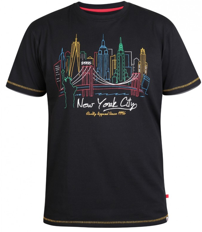Kratka majica v večji številkiKupujte pri nas v velikostih 2XL-8XLOd kul britanske blagovne znamke D555Izdelano iz 100% bombažaBarva je črnaStrojno pranje na 30°Sezonski izdelek - zaloga velikosti se ne obnavljaKliknite tu za prikaz tabele velikosti