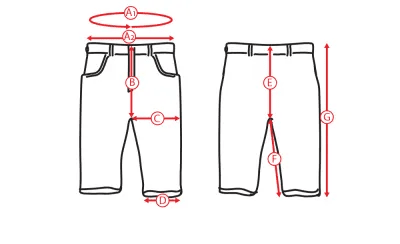 C - thigh width is measured from crotch seam over thigh outer edge on pants