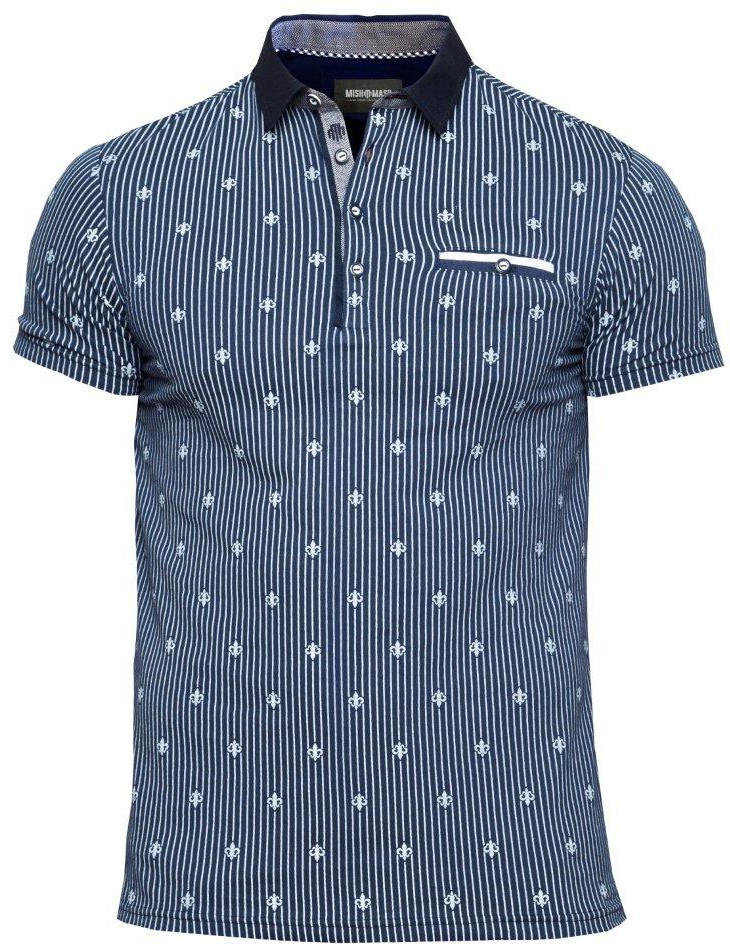 Kam Jeans 5518 Smart Mini Geo-Print Polo Navy