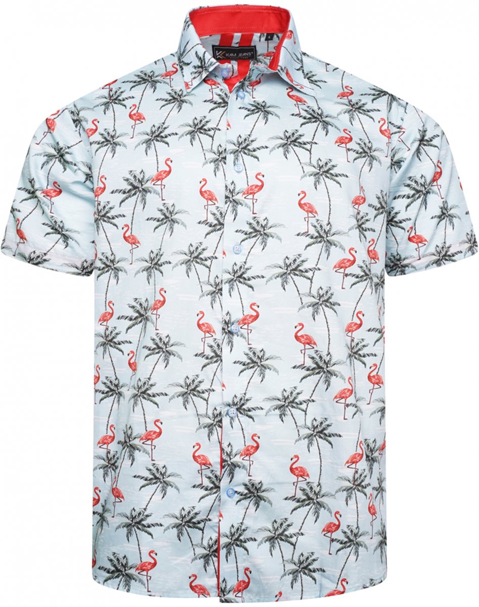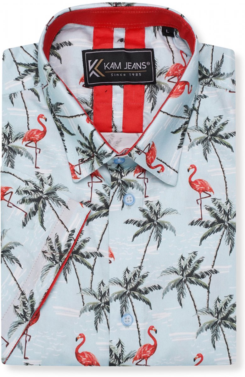 Tabela velikosti - Kam Jeans 6067 Flamingo and Palm Tree Short Sleeve Shirt Blue