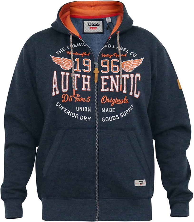 Tabela velikosti - D555 HAMILTON Full Zip Hoody With Authentic 1996 Chest Print Denim