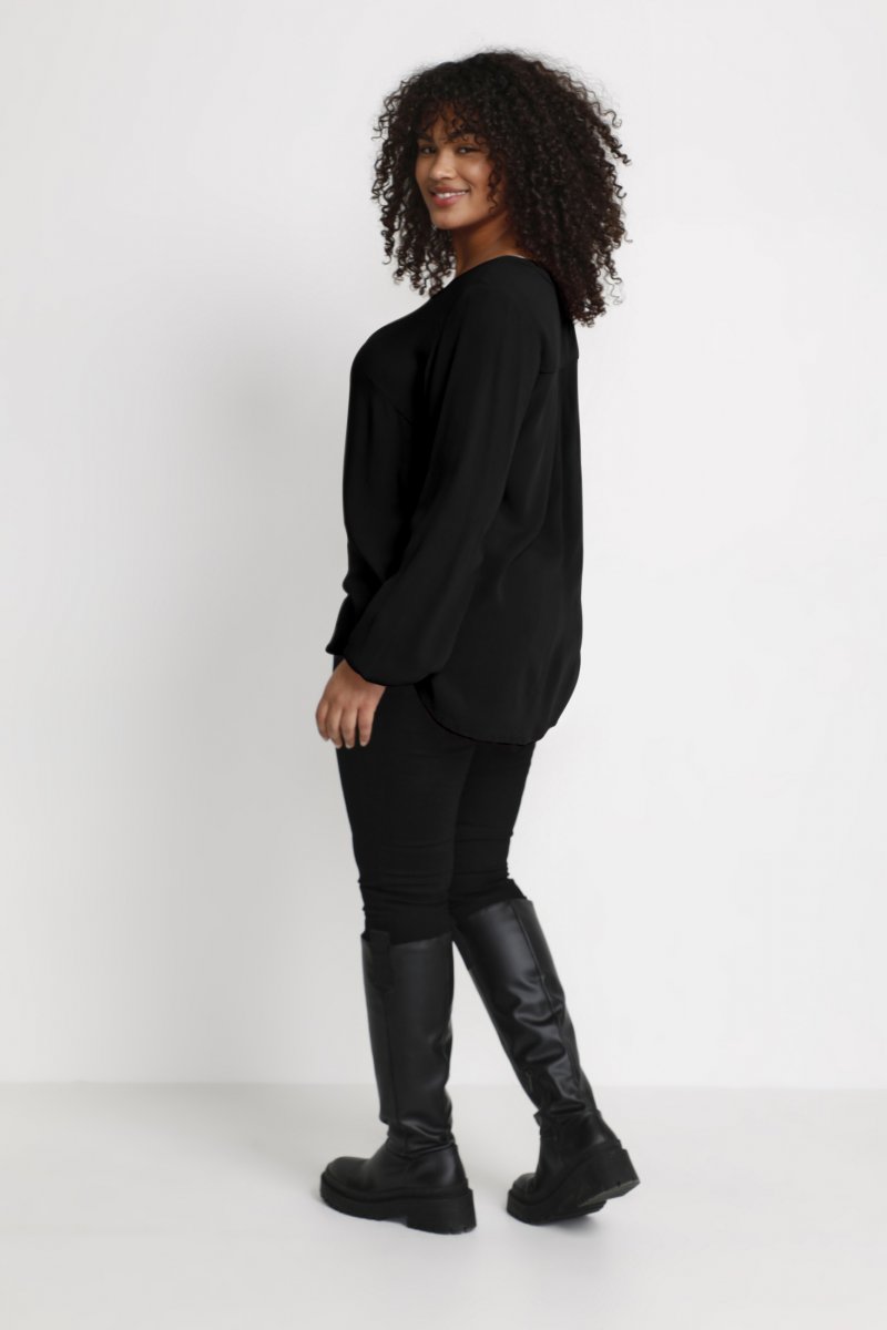 BluzaNa voljo v velikostih 42–56Od blagovne znamke Kaffe CurveIzdelano iz 100% viskoze (LENZING™ ECOVERO™)Klasičen krojBarva je črnaKliknite tu za prikaz tabele velikosti