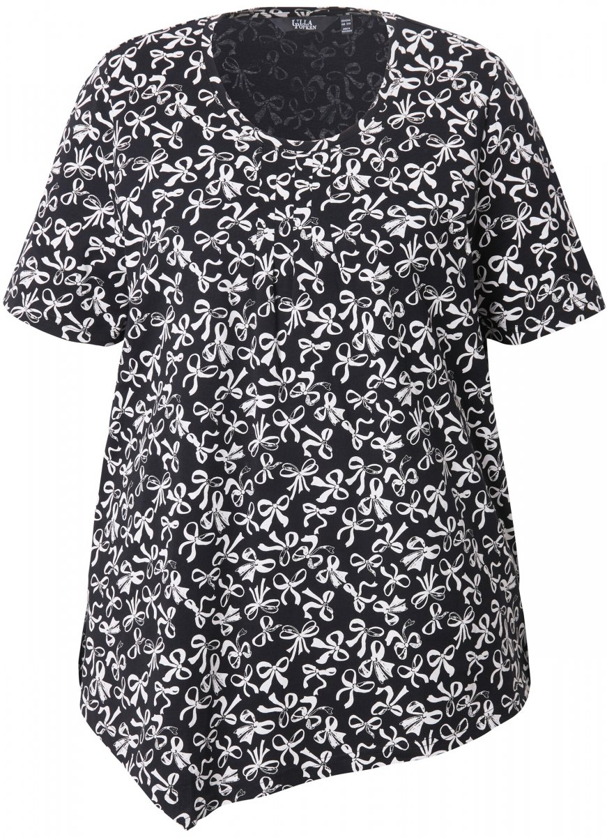 Tabela velikosti - Ulla Popken Bow Print Short Sleeve Pointed Hem Tee Black