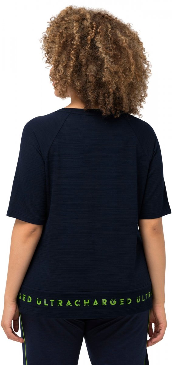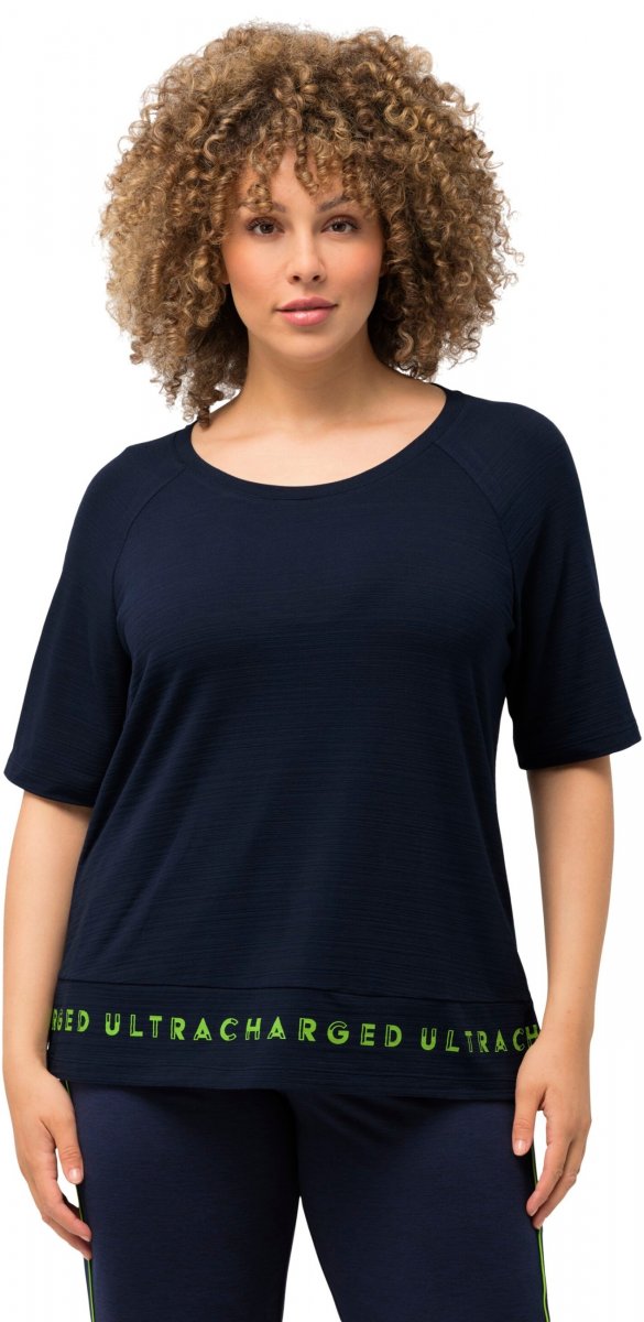 Ulla Popken Classic Fit Half-Sleeve Crew Neck T-shirt With Hem Inscription Navy Blue