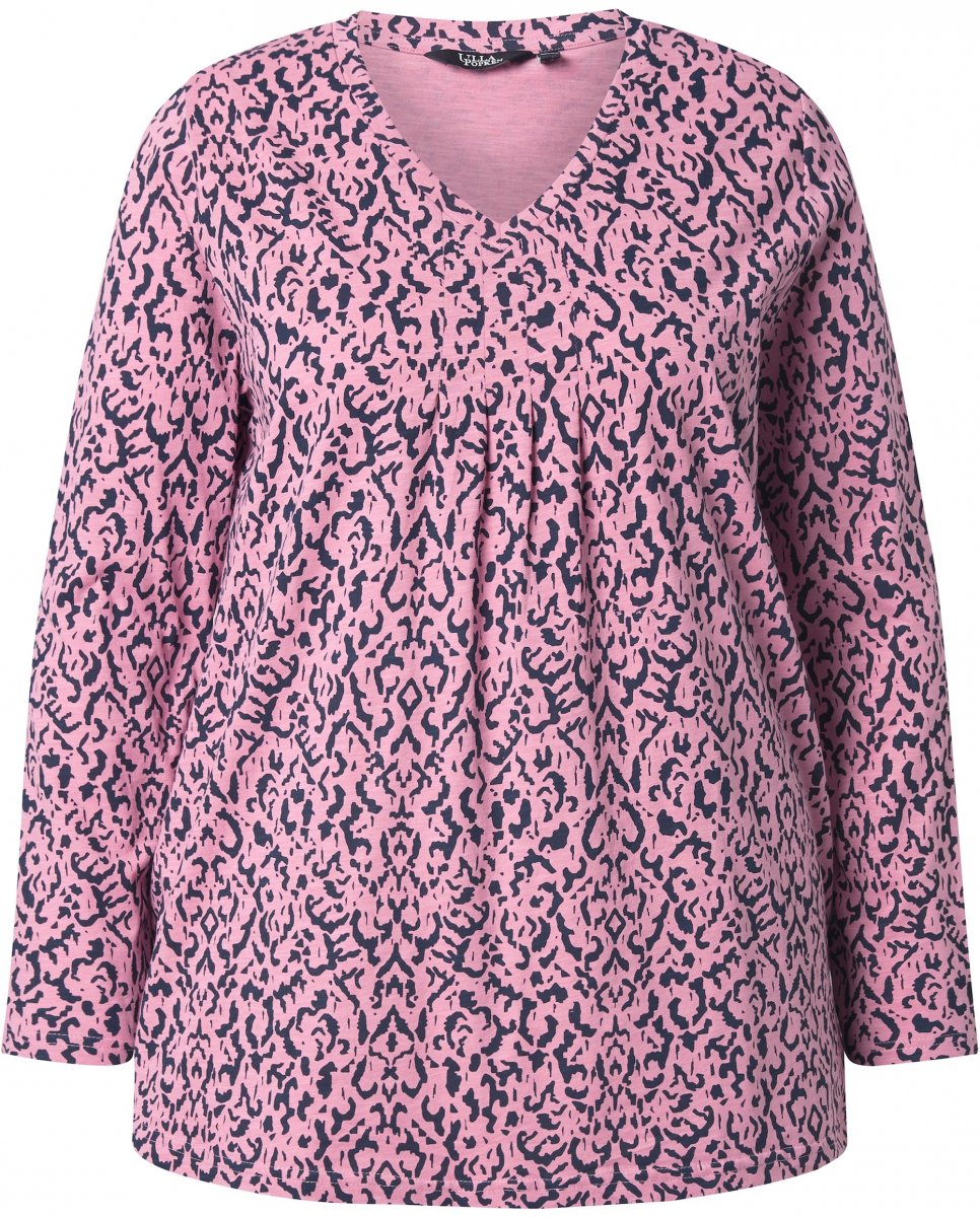 Ulla Popken Geometric Print 3/4 Sleeve Pleated Tee Raspberry