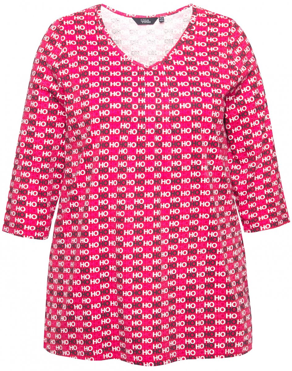 Ulla Popken Minimalist Ho Ho Ho Print 3/4 Sleeve Tee Salsa Red