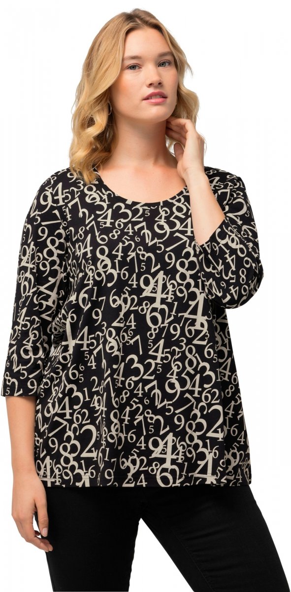 Ulla Popken Number Print 3/4 Sleeve Tee Black