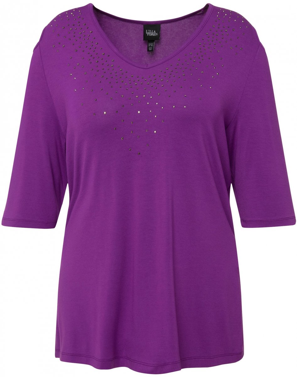 Ulla Popken Rhinestone Detail 3/4 Sleeve Tee Blackberry