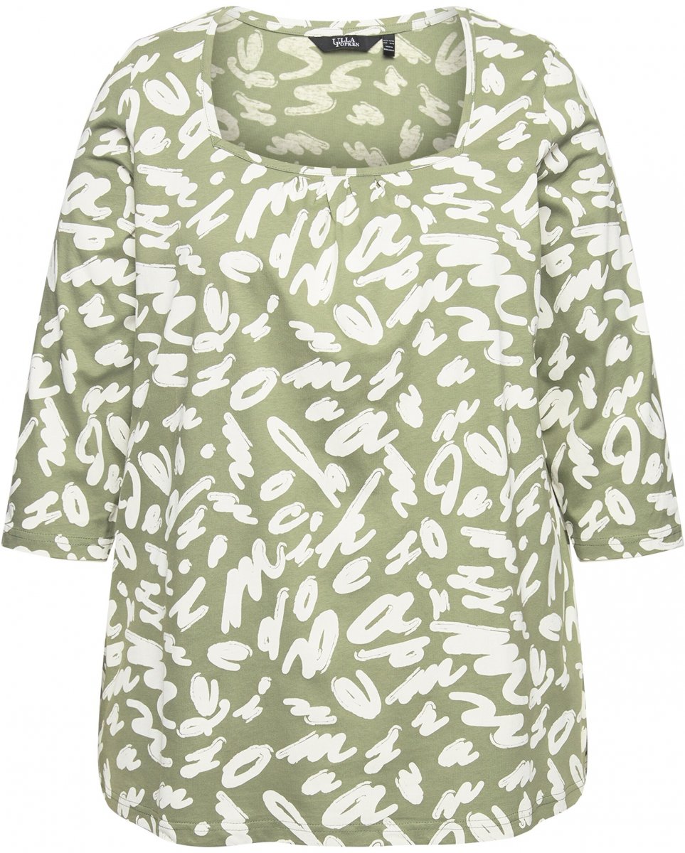 Tabela velikosti - Ulla Popken Scribble Print Square Neck 3/4 Sleeve Tee Sage Green