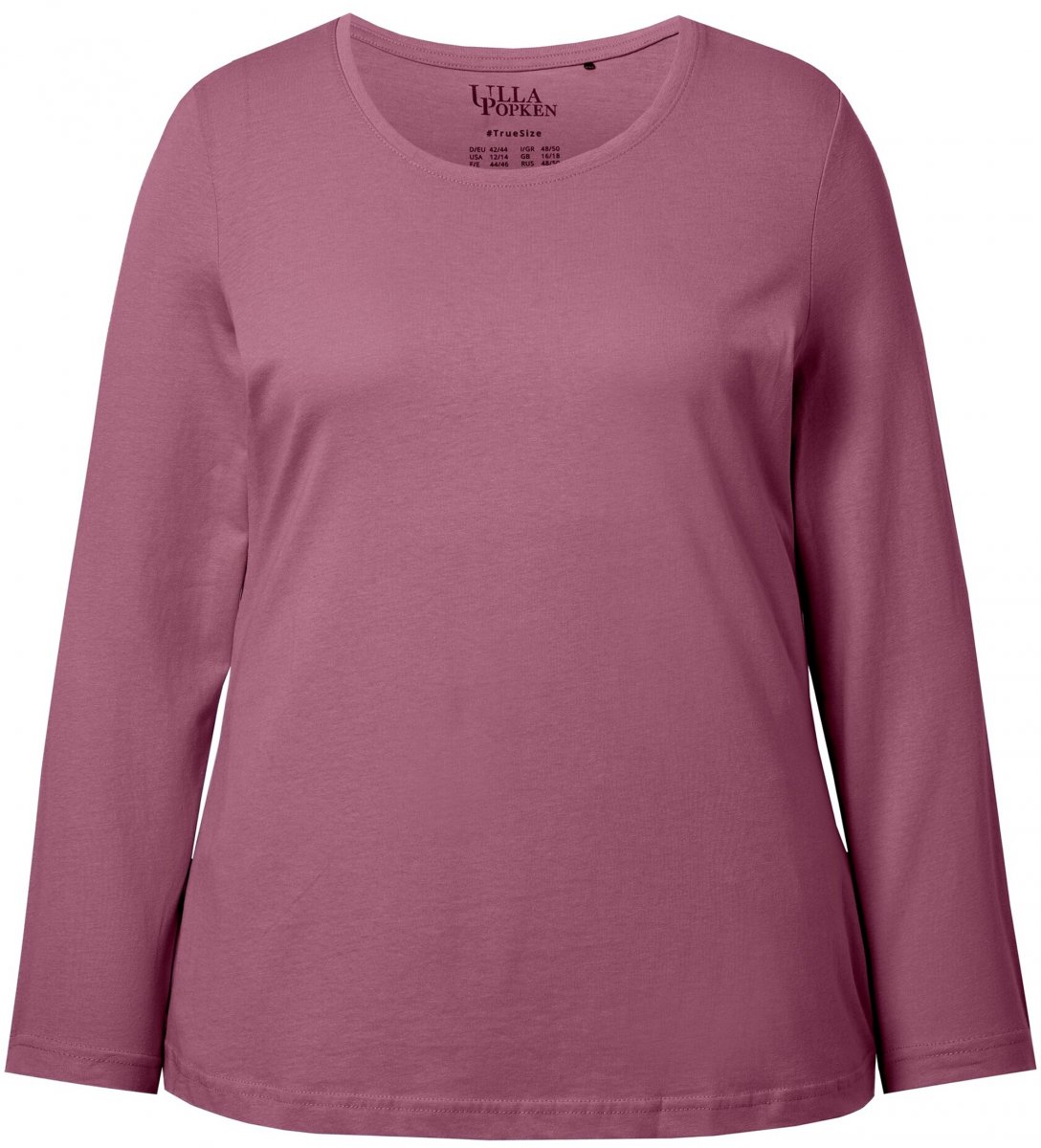 Ulla Popken Basic Round Neck Long Sleeve Slim Fit Cotton Tee Dark Rose