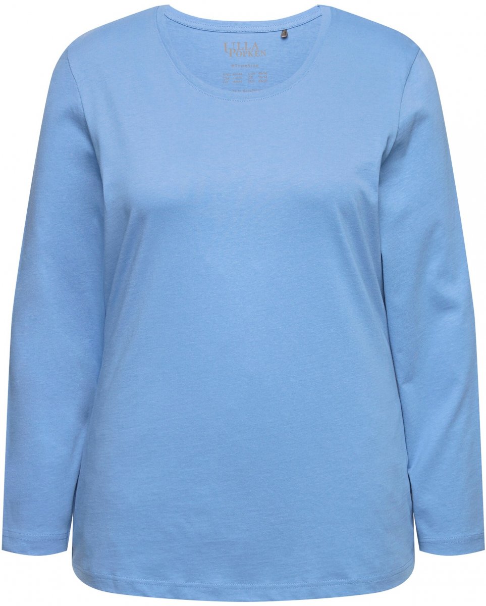 Ulla Popken Basic Round Neck Long Sleeve Slim Fit Cotton Tee Light Cornflower