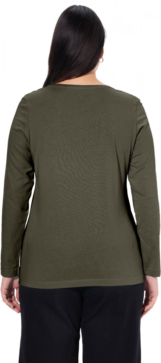 Ulla Popken Basic Round Neck Long Sleeve Slim Fit Cotton Tee Olive