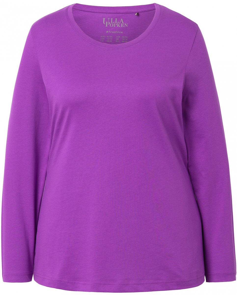 Ulla Popken Basic Round Neck Long Sleeve Slim Fit Cotton Tee Purple