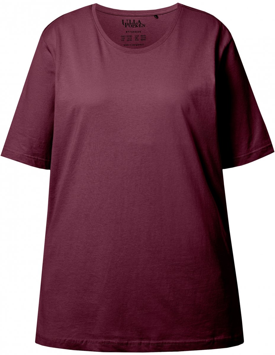 Ulla Popken Basic Round Neck Short Sleeve Relaxed Fit T-Shirt Dark Red