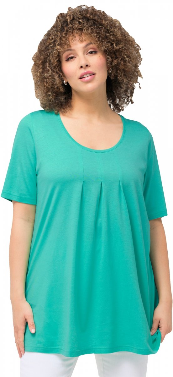 Ulla Popken Essential Front Pleat Tee Turquoise Green