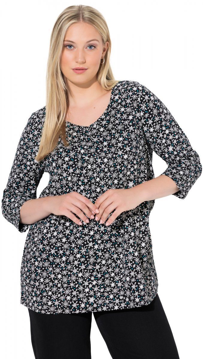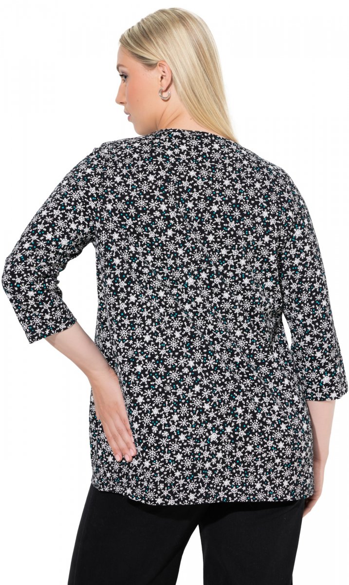 Ulla Popken Snowflake Print 3/4 Sleeve Tee Black