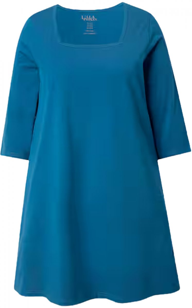 Ulla Popken Square Neckline Knit Swing A-line Pocket Tunic Teal