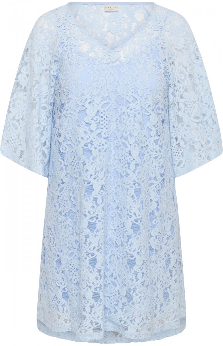 OblekaNa voljo v velikostih 42–54Od blagovne znamke Kaffe CurveMaterial: 80 % bombaž, 20 % poliamidA-krojBarva je modraKliknite tu za prikaz tabele velikosti