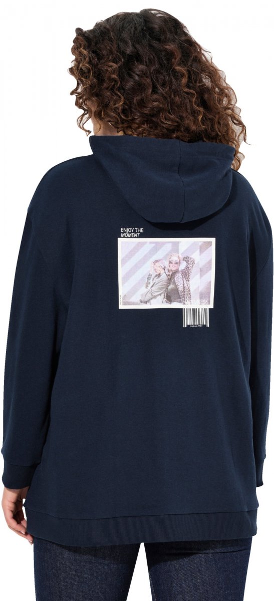 Ulla Popken Back Print Kangaroo Pocket Hoodie Navy