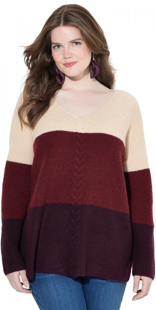 Tabela velikosti - Ulla Popken Cable Knit Block Stripe V-Neck Sweater Dark Ruby