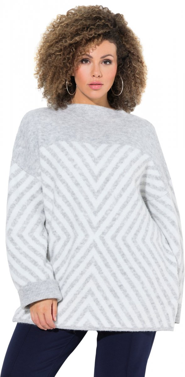 Tabela velikosti - Ulla Popken Graphic Stripe Long Sleeve Turtleneck Sweater Silver Melange