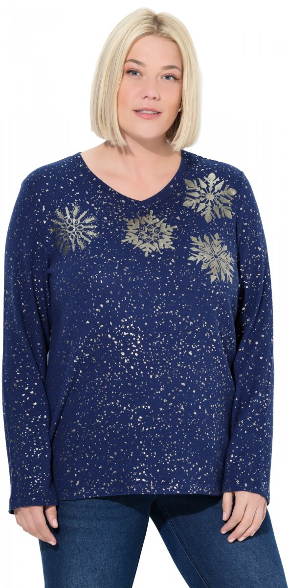 Tabela velikosti - Ulla Popken Metallic Print Extra Soft Christmas Sweatshirt Ink Blue