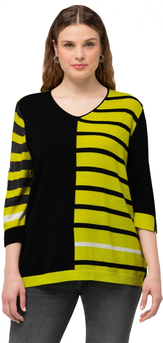 Tabela velikosti - Ulla Popken Mixed Stripe 3/4 Sleeve Colorblock Sweater Apple Green