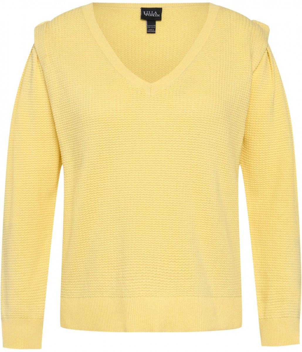 Ulla Popken Shoulder Accent Classic Fit Textured Knit Sweater Lemon Yellow