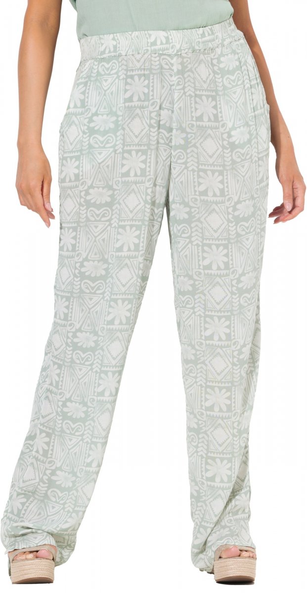 Ulla Popken Animal Print Elastic Waist Pants White