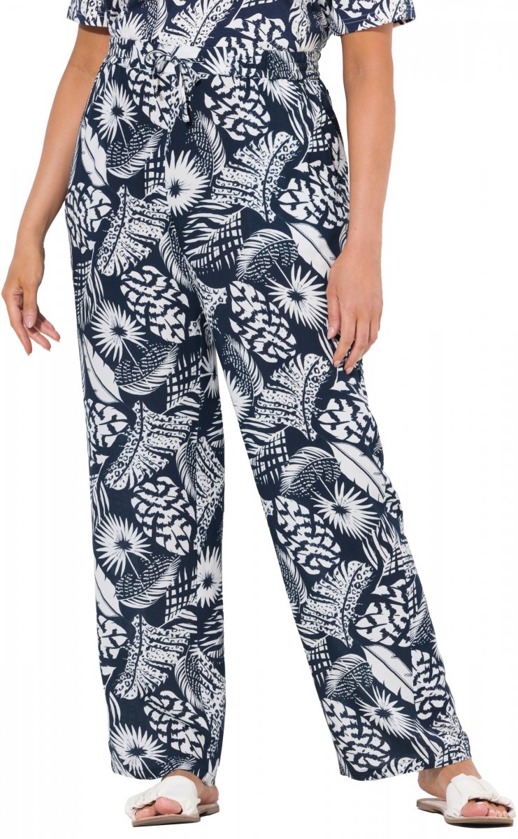 Ulla Popken Feather Print Elastic Waist Pants Blue