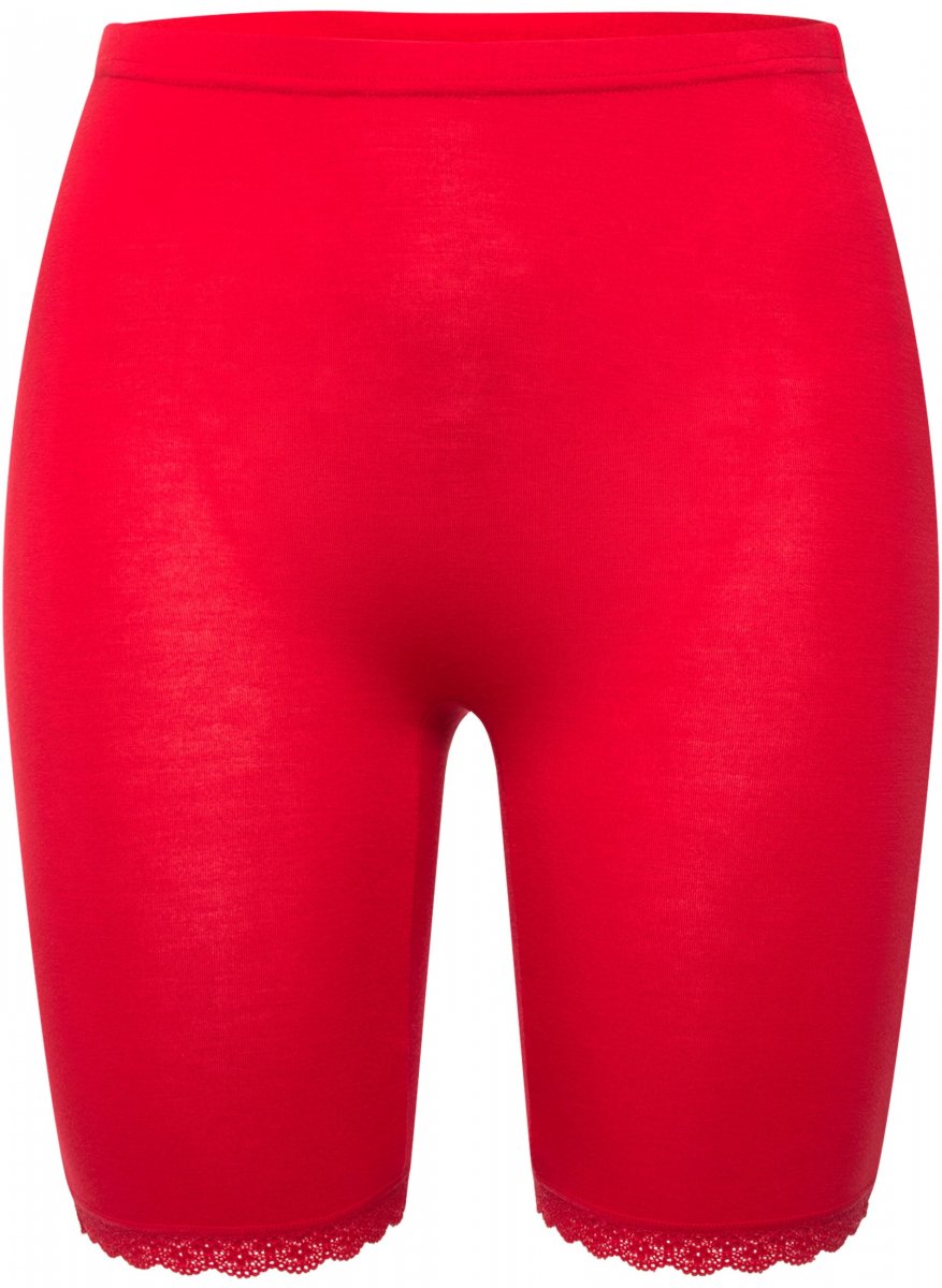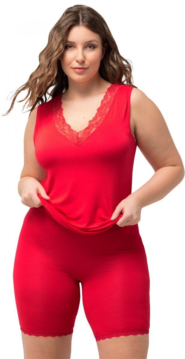 Ulla Popken Lace Hem Stretch Viscose Knit Bicycle Length Lounge Shorts Red