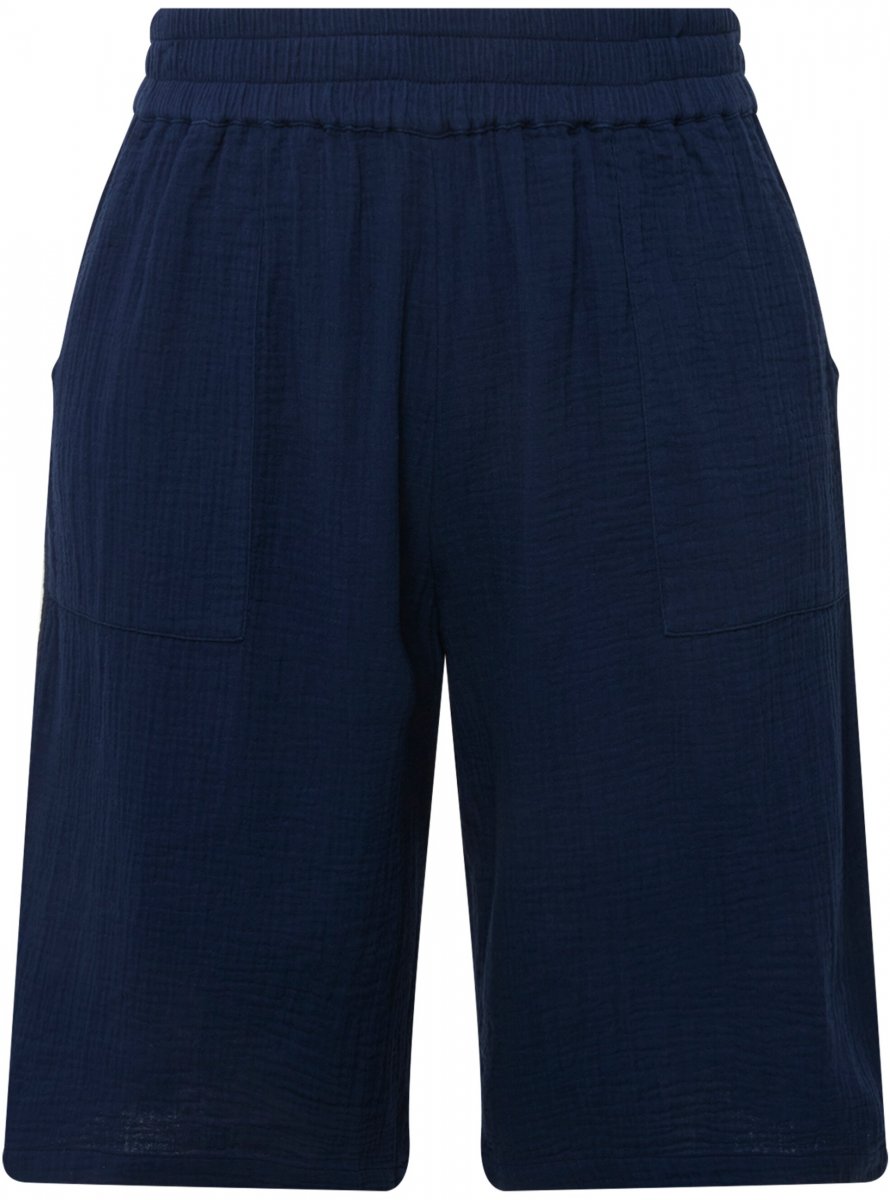 Ulla Popken Muslin Elastic Waist Wide Leg Shorts Blue