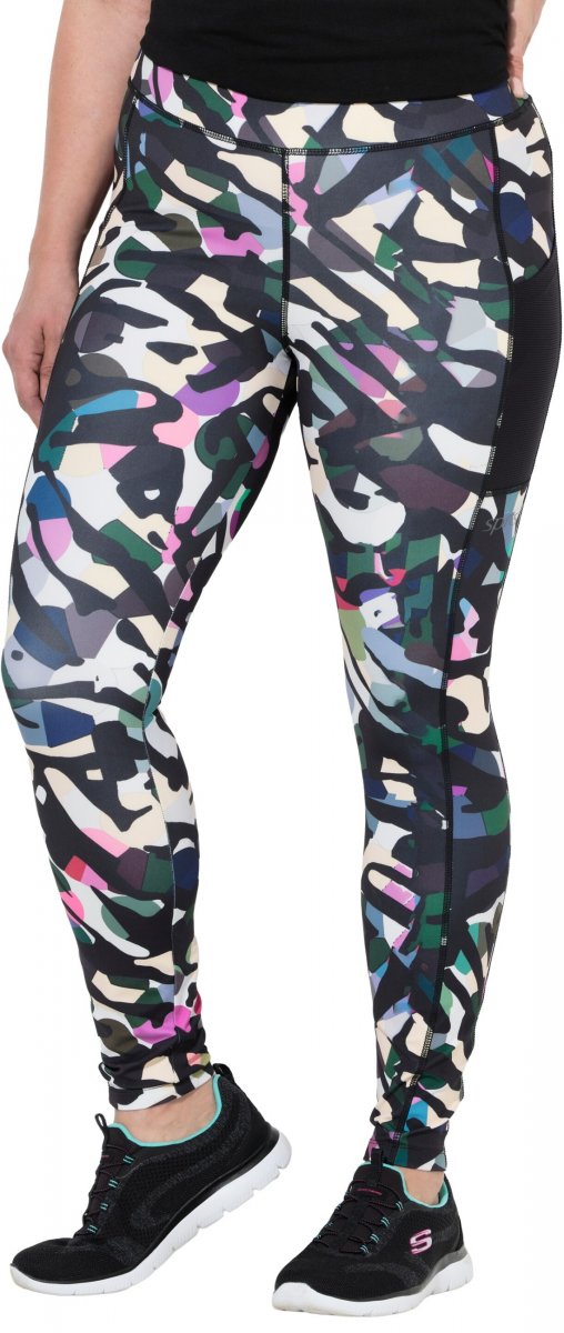 Ulla Popken Quick Drying Botanical Print Sport Leggings Black