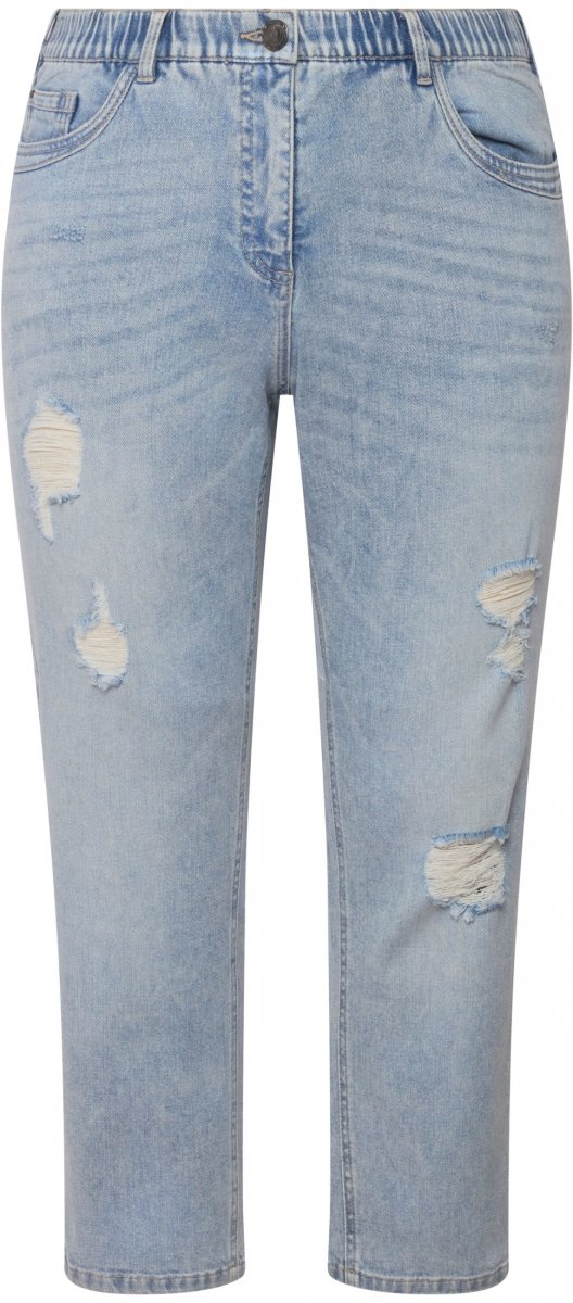 Ulla Popken Stonewashed Distressed Boyfriend Jeans Light Blue
