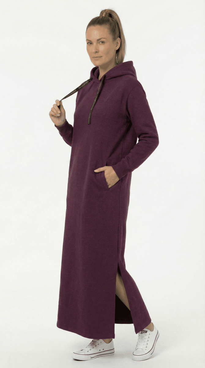 Long hoodieNa voljo v velikostih S-XXLOd znamke Nora MikkenNarejeno iz 60% bombaža, 40% poliestraMaxiBarva je vijoličnaJopica ima 2 žepa na sprednji straniKliknite tu za prikaz tabele velikosti